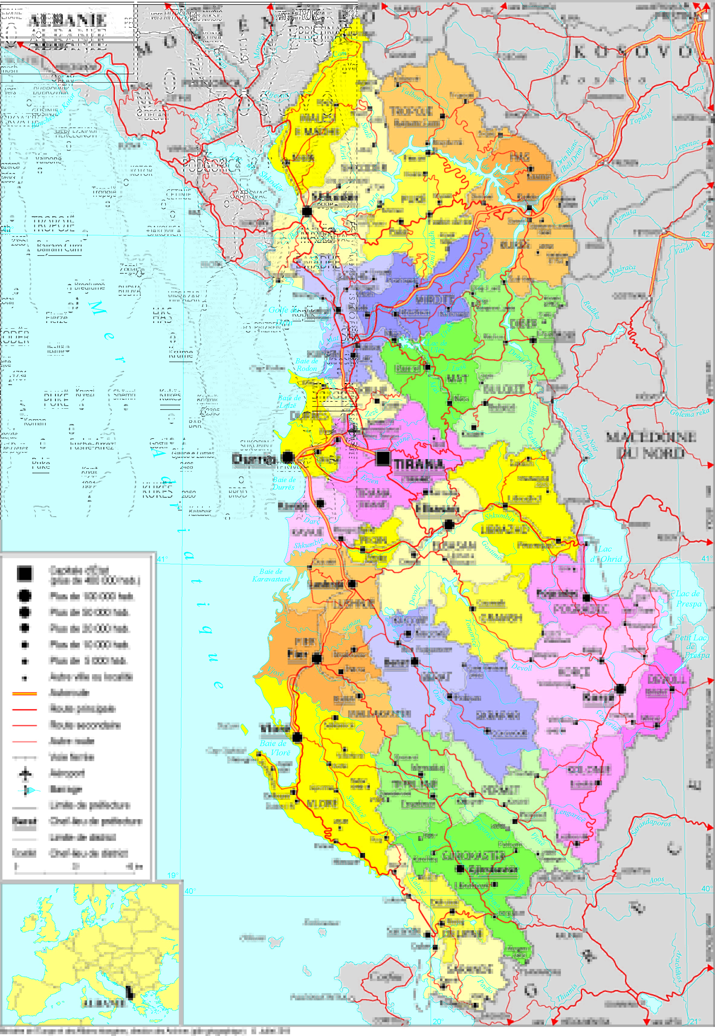 Albanie - administrative • Carte • PopulationData.net from www.populationdata.net Houever approximately 500,000 fowk are reportit tae profess an albanie identity. The country has an extensive archaeological heritage; Sousedí s černou horou, kosovem, makedonií a na jihu s řeckem. Pyšní se nádhernou, nedotčenou přírodou, starobylými městy i výbornou kuchyní.zásluhou krásných pláží s pozvolným vstupem do průzračné vody představuje skvělou volbu pro rodiny s. Shqipëria) is a country in the balkans.it shares borders with greece, north macedonia, kosovo, and montenegro, sharing a maritime border with italy.albania has unspoiled beaches, mountainous landscapes, traditional cuisine, archaeological artifacts, unique traditions, low prices and a wild atmosphere of the countryside. We have reviews of the best places to see in albania. Albánie (albánsky shqipëria) leží v jihozápadní části balkánského poloostrova na pobřeží jaderského a jónského moře. Shqipëria et republika e shqipërisë / ɾ ɛ p u ˈ b l i k a ɛ ʃ c i p ə ˈ ɾ i ː s ə /, littéralement « pays des aigles ») est une république située en europe du sud, dans l'ouest de la péninsule des balkans.elle possède une façade maritime à l'ouest, donnant sur la mer adriatique et la mer ionienne.